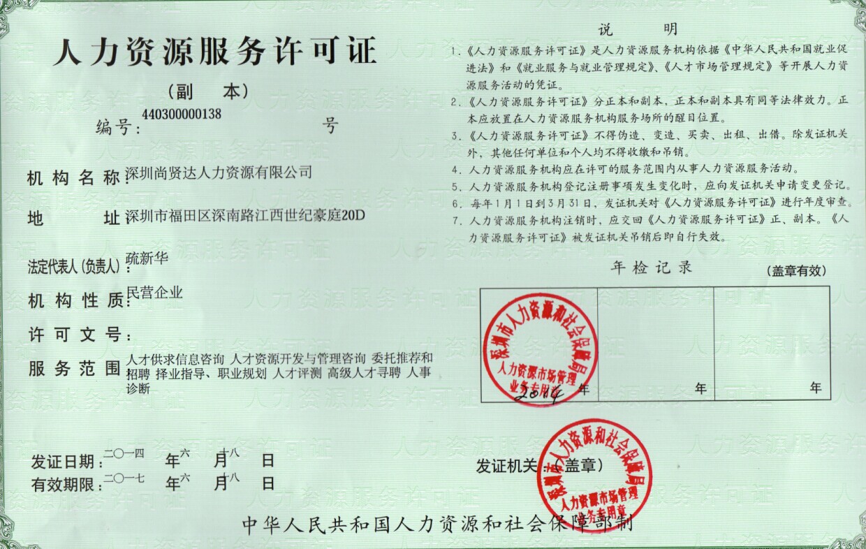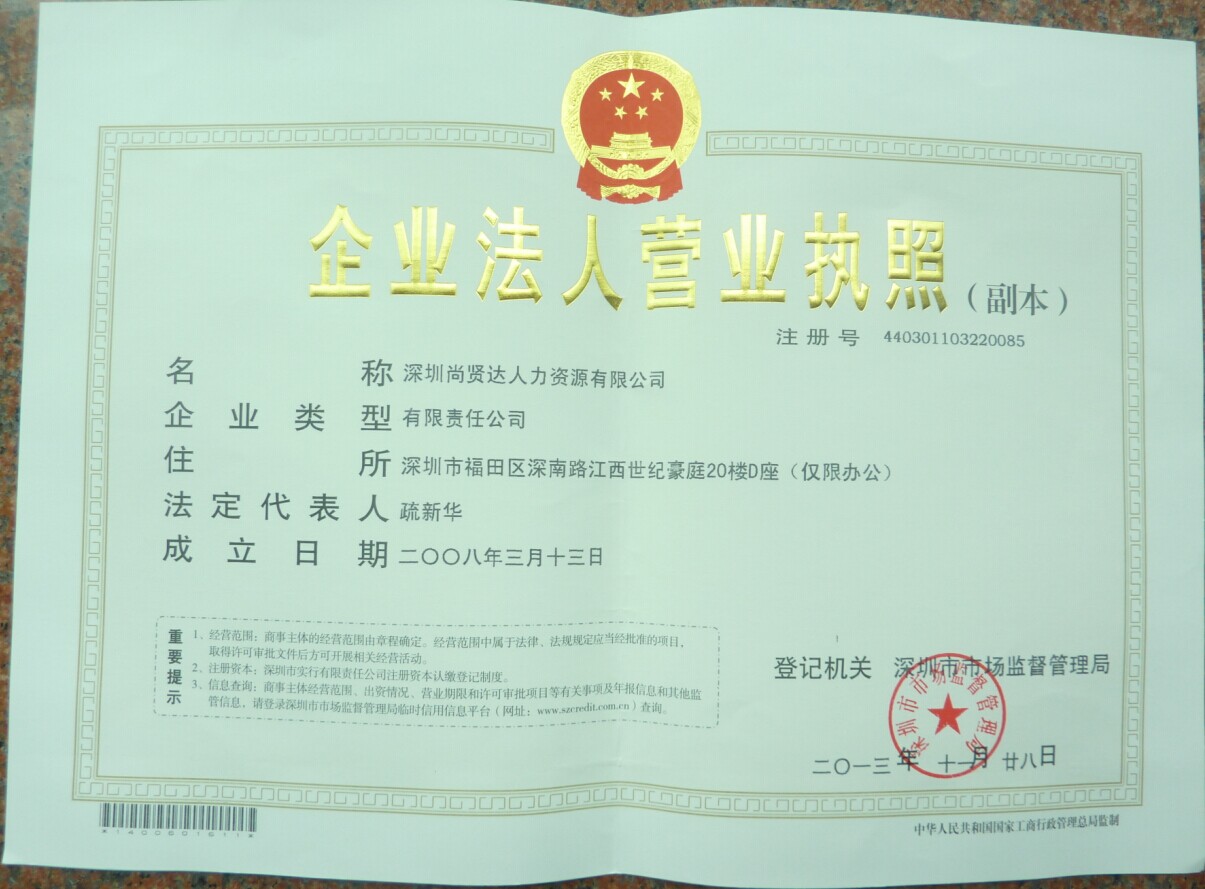 尚賢達獵頭公司營業(yè)執(zhí)照